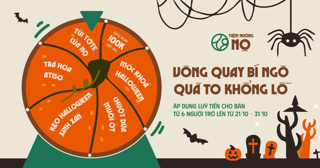 🎃 VÒNG QUAY BÍ NGÔ – QUÀ TO KHỔNG LỒ 🎃 💛 Halloween này, Tiệm Nướng Nọ hé lộ bí kíp “bắt quà” hot nhất mùa: VÒNG QUAY BÍ NGÔ, cứ quay là trúng, vui tung nóc. 🕯️ Cách chơi cực dễ: Chỉ cần đi bàn từ 6 người trở lên, bạn đã được quay...
